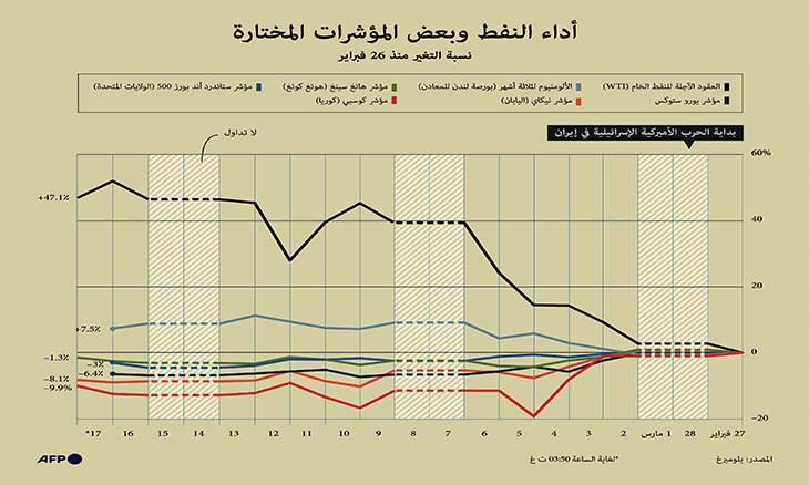 وفي الجلسة السابقة، سجلت العقود الآجلة لخام برنت انخفاضاً بنسبة 2.8 في المئة عند التسوية، بينما تراجع خام غرب تكساس الوسيط الأمريكي 5.3 في المئة بعد أن أبحرت بعض السفن عبر المضيق.
