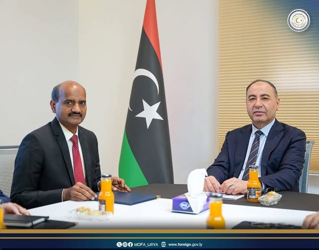 استقبل معالي السيد الطاهر الباعور، المكلف بتسيير شؤون وزارة الخارجية والتعاون الدولي، صباح يوم الخميس الموافق 08 يناير 2026، بديوان الوزارة، سعادة الدكتور حفظ الرحمن، سفير جمهورية الهند الجديد المعين لدى دولة ليبيا.