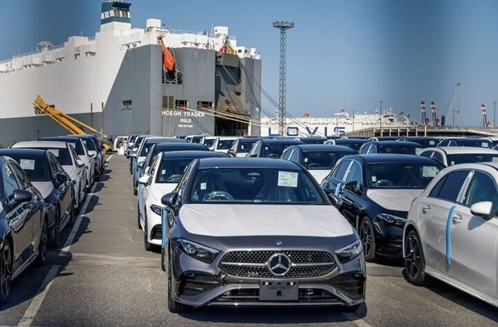 سيارات جديدة من مرسيدس في ميناء بريمرهافن، شمال ألمانيا. 12 يونيو/حزيران 2025. ا ف ب ميونخ: أفاد...